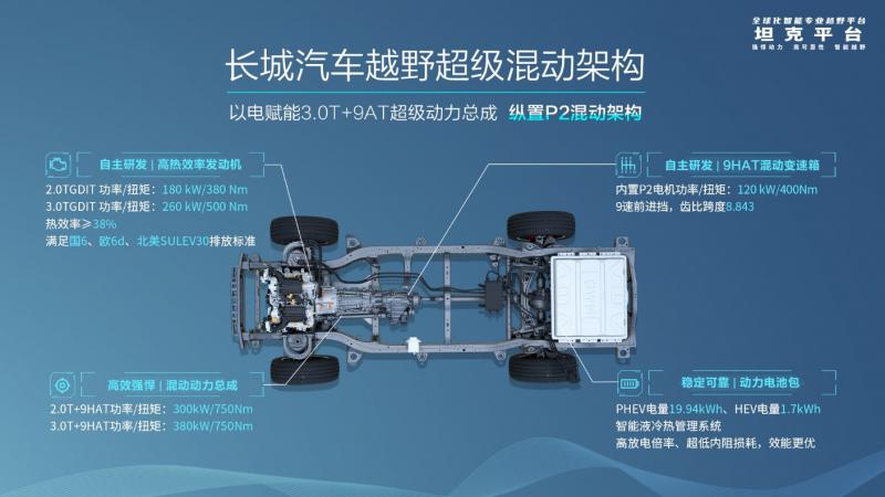长城汽车3.0T V6发动机顺应时代新能源化发展趋势,加速推动长城汽车新能源战略落地。该机型全部搭载了48V轻混技术,进一步降低了油耗,并在提升平顺性方面取得良好效果。此外,今年成都车展上,长城汽车发布的坦克平台越野超级混动架构,就包含了由3.0T V6发动机与长城汽车自主研发的9速纵置混动自动变速器——9HAT组合而成的高阶混合动力总成,该动力总成峰值功率可达380kW、最大扭矩750Nm,满足用户对越野电动化的双向体验需求。