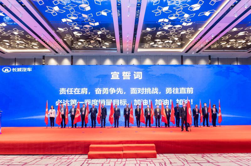 继1月5日-6日销售服务商务年会成功举办后,1月9日,长城汽车分区域组织中区、南区、北区、东区、西区经销商伙伴,分别在郑州、广州、长春、杭州、成都,同步召开年度战略规划落地及一季度营销部署会,并现场签署军令状、授战旗,展示合作共赢的信心与决心,确保长城汽车顺利完成2023年销量目标。长城汽车总裁穆峰、长城汽车CGO李瑞峰、哈弗、魏牌、坦克、欧拉、沙龙和长城皮卡六大品牌相关负责人及来自全国五大区域的经销商投资人出席上述活动。