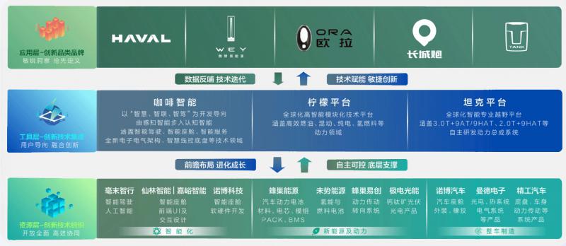 如今,面对新能源、智能化行业浪潮,长城汽车前瞻布局,建立了以整车为核心,全面布局新能源、智能化等相关技术产业的“长城森林生态体系”,确立了多条技术路线并举的发展策略,完成了“太阳能-电池-氢能-车用动力”的全价值链布局。目前,长城汽车已成为中国唯一完成能源、智能化两大领域扁平化、网络化、去中心化的全产业链布局的企业。