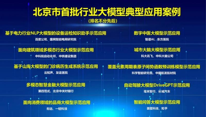 上述10个行业大模型应用案例,是为进一步落实北京市《加快建设具有全球影响力的人工智能创新策源地实施方案》和《通用人工智能创新发展若干措施》,加快人工智能场景建设相关举措落地实施,由北京市科委、中关村管委会组织专家凝练并发布现阶段技术创新性相对较强、成熟度相对较高、应用前景广阔的典型应用案例。
