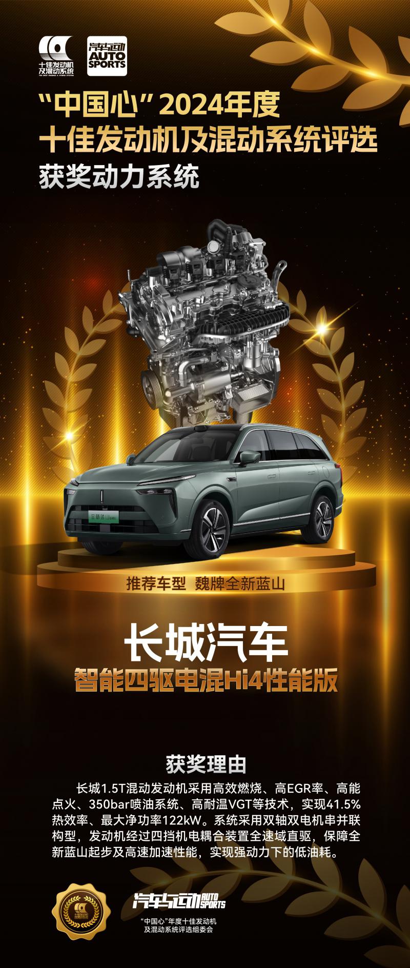 近日,“中国心”2024年度十佳发动机及混动系统评选结果正式揭晓,长城汽车智能四驱电混Hi4性能版经过层层评选,成功荣获这一备受行业认可的技术大奖。值得一提的是,这也是长城汽车第11次入选“中国心”年度十佳榜单,再次展现了长城汽车卓越的技术实力。